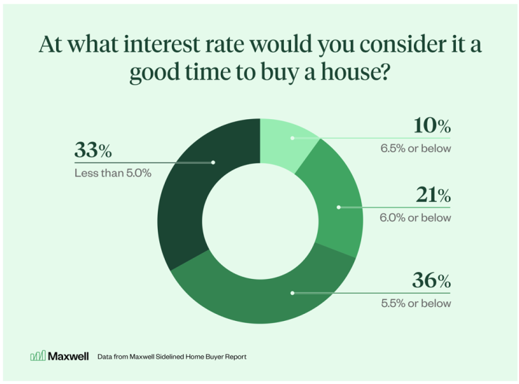 Despite the challenges, sidelined homeowners haven't given up. Of those surveyed, the largest segment (36%) reported they'd look to buy at 5.5% or below. Another third (33%) say they'd wait for rates to fall to 5.0% or below—meaning around 70% of sidelined home buyers plan to take action once rates hit 5.0%.