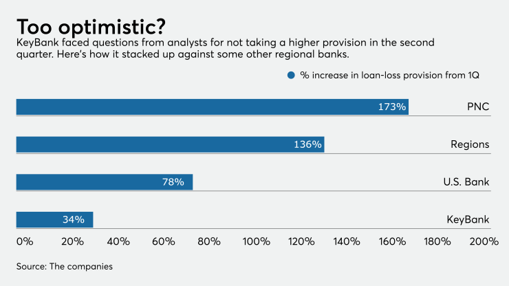 On Wednesday, executives at the Cleveland company defended the decision to set aside $482 million for credit losses, telling analysts on the second-quarter earnings call that the provision exceeds net charge-offs for the quarter by $386 million and reflects a June 30 economic outlook that’s largely unchanged more than halfway through July.