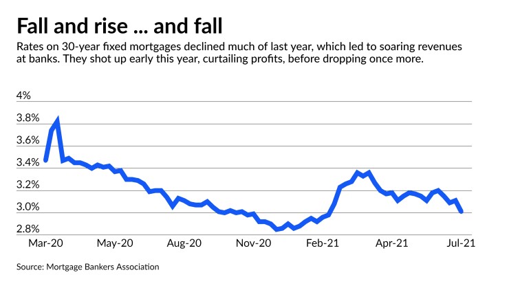 “We essentially are returning to more normal times in mortgage,” said Jim Mabry, chief financial officer at the $16 billion-asset Renasant Corp. in Mississippi, where net gains on mortgage loan sales fell by nearly half in the second quarter.