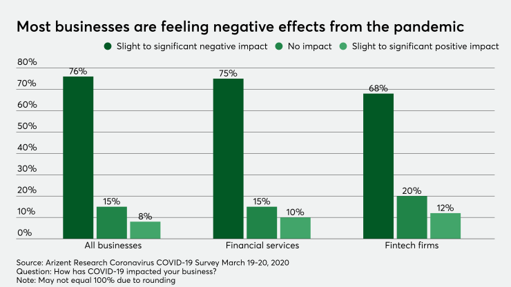 The coronavirus pandemic has had an immediate and negative impact on many businesses including financial services firms and fintechs, with long-lasting repercussions as consumers change how they use their money and companies adapt to managing a remote workforce.