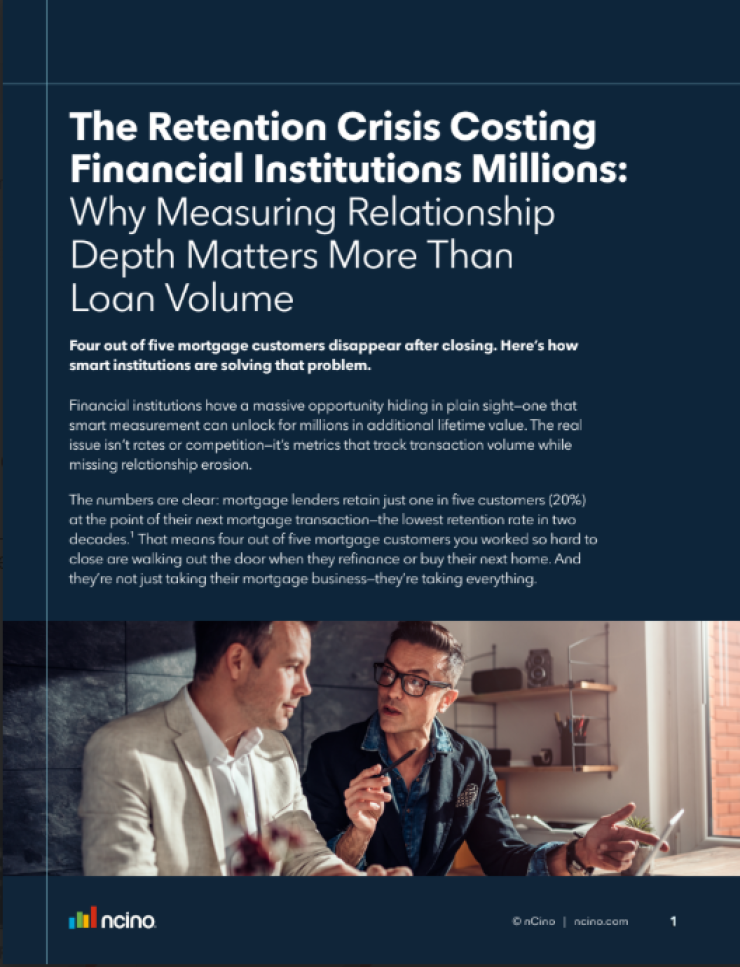 Mortgage lenders retain just 20% of customers at their next transaction—the lowest rate in two decades. When those customers leave, they're not just taking their mortgage business. They're taking everything: checking accounts, wealth management assets, business banking relationships. For community-focused institutions, that's a lost relationship worth tens of thousands in lifetime value.